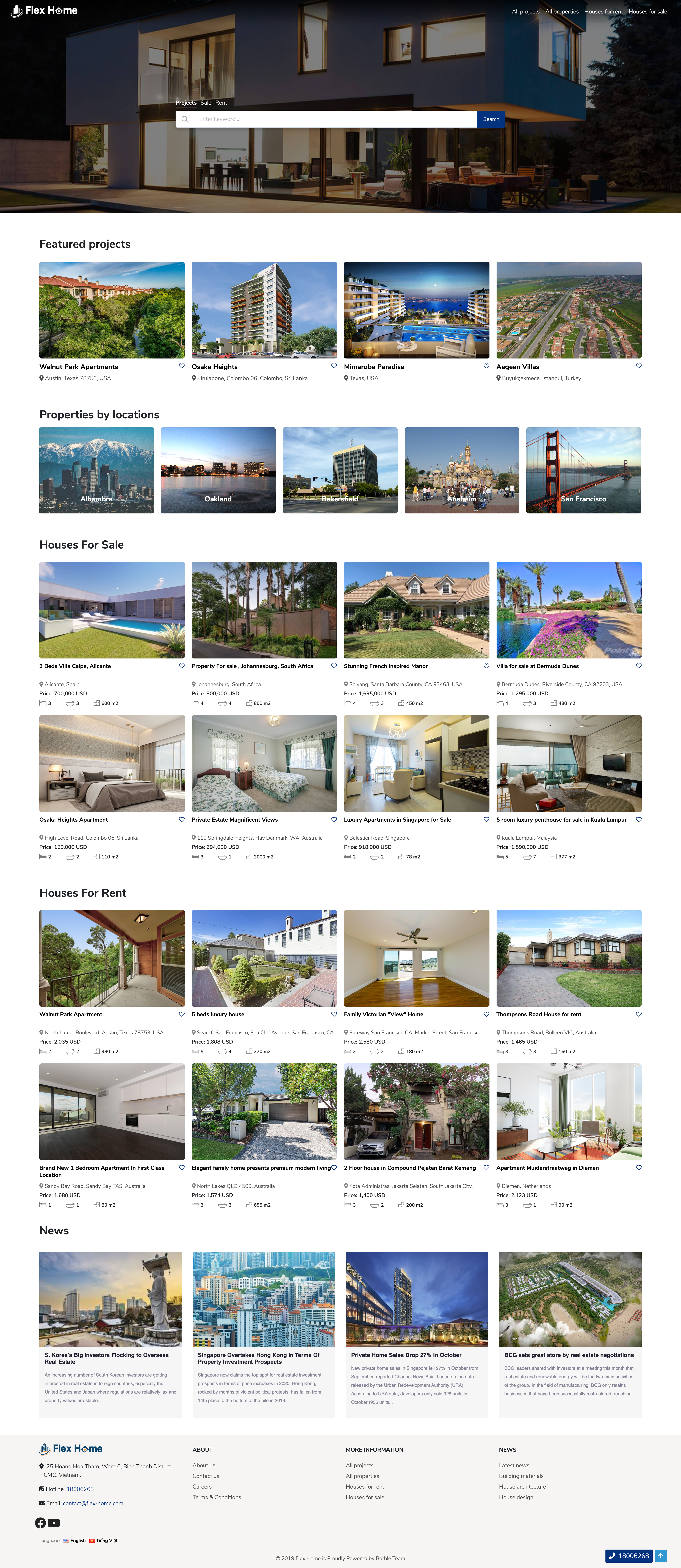 Page, blog, menu, contact, real estate.. modules are provided with the use of components to avoid boilerplate code. RSS feeds for posts https://flex-home.botble.com/feed/posts and properties https://flex-home.botble.com/feed/properties Agency panel with credit system to post their properties. Support payment methods: PayPal, Stripe, Razorpay, and Paystack to buy credits.